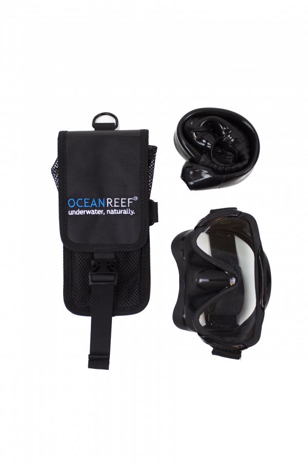 That is why we put together a back up bailing system made of a comfortable conventional mask with fabric strap for easy and quick donning, a flexible, semi-dry snorkel and a tough pouch where you can fit the mask, the rolling snorkel and hang it on your BCD or on your belt thanks to the 2 D rings and belt loop.